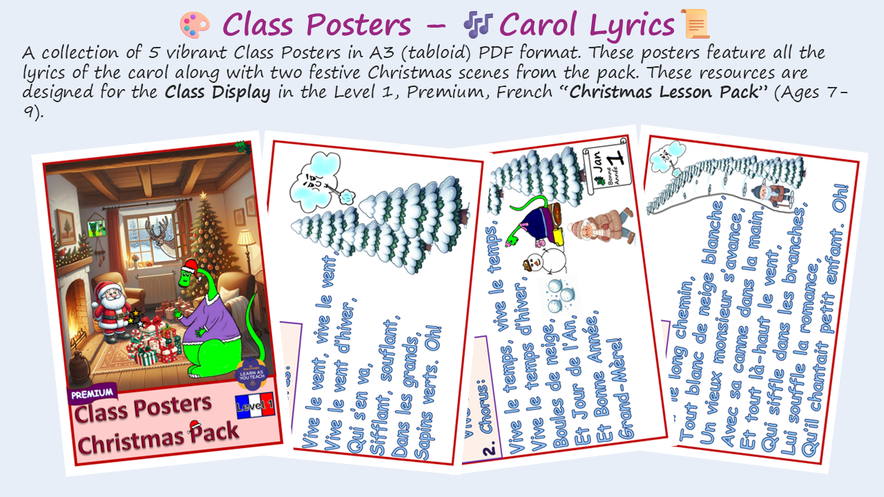 🖼️ Illustrated A3/Tabloid Sheets: Two Christmas scenes and matching carol vocabulary posters to brighten your classroom.