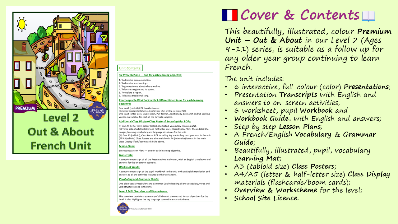 🔑 Unlock the world of French with our Premium French Unit, specially designed for Level 2 learners aged 9-11. This vibrant unit is filled with engaging activities that will ignite children’s passion for 📖 reading, ✏️ writing, 🎧 listening, and 🗣️ speaking French.