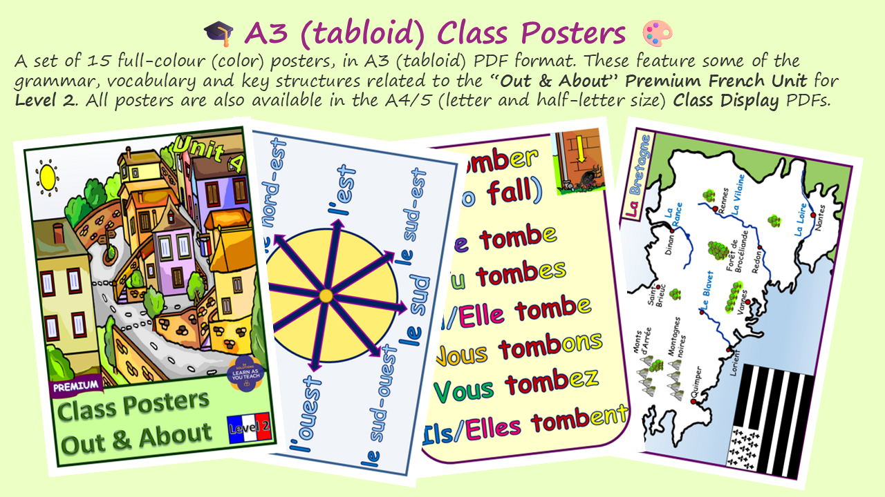 - Class Posters: A set of A3 (tabloid) posters of grammar and key structures.
