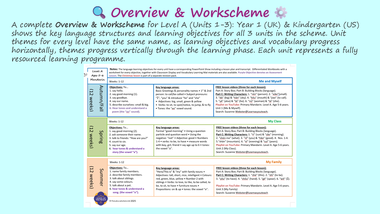 - KS1 Mandarin: Year 1 Essential Mandarin Unit – Me & Myself 🖥️: Seven engaging Presentations (one for each learning objective), Vocabulary, Transcripts, and a handy Grammar Guide.